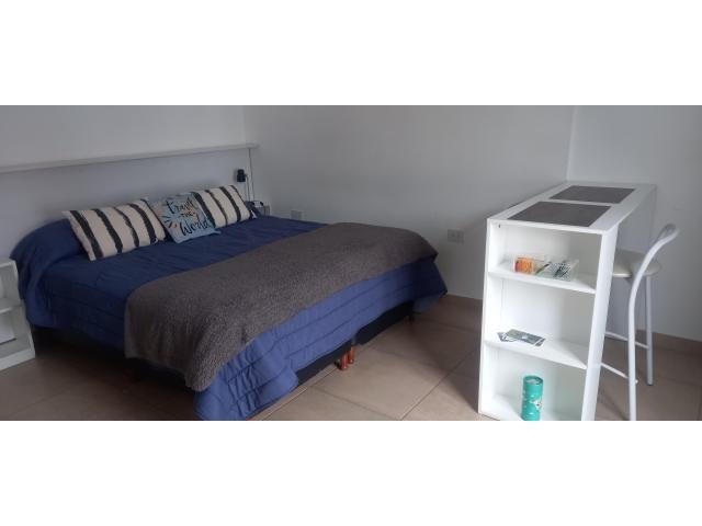 Monoambiente Bla Bla equipado para 2 personas, zona centrica de Ushuaia, sobre calle muy tranquila en segundo piso, acceso por escalera orientado al frente. Alquiler temporario para turistas.